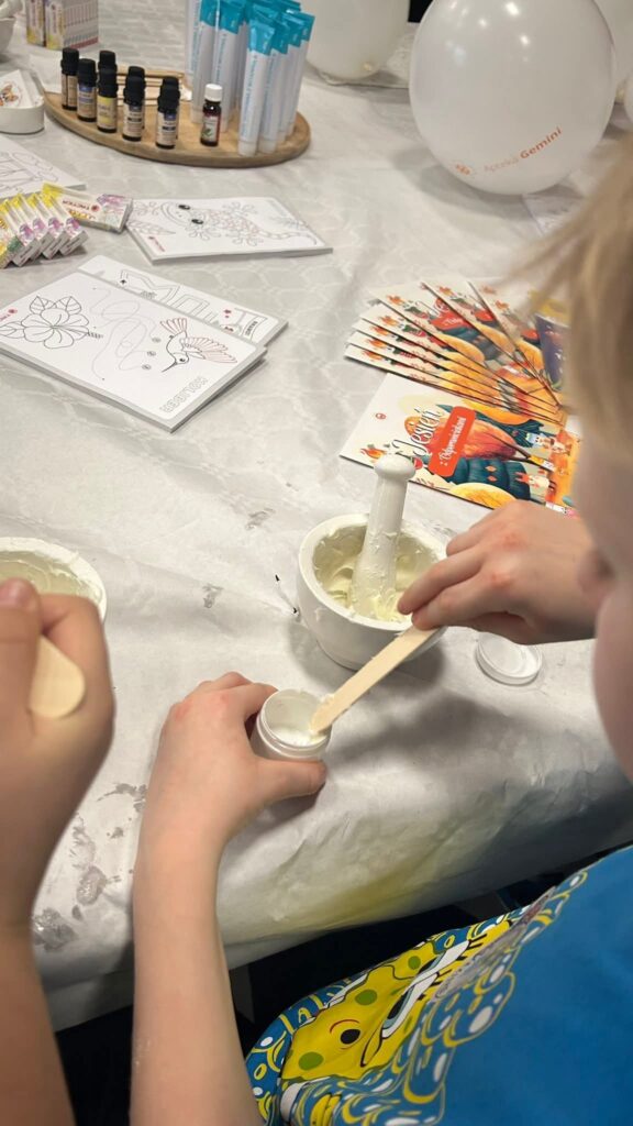 - – Warsztaty kosmetyczne – uczestnicy samodzielnie przygotowywali krem do rąk z witaminą A oraz maść rozgrzewającą na bóle pleców z naturalnymi olejkami eterycznymi. To nie tylko praktyczna nauka, ale też świetny sposób na poznanie tajników tworzenia bezpiecznych, domowych kosmetyków.