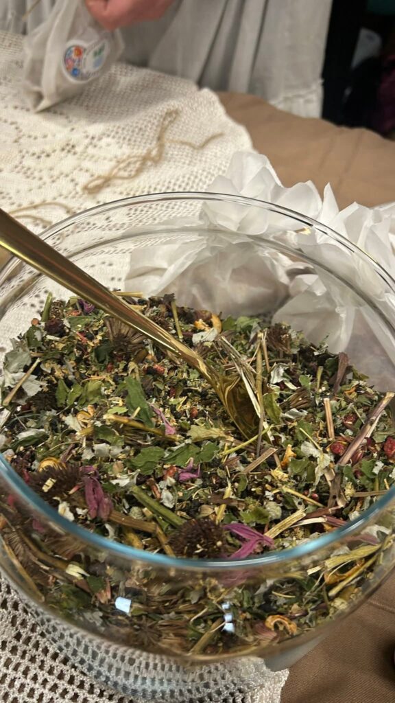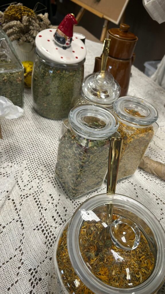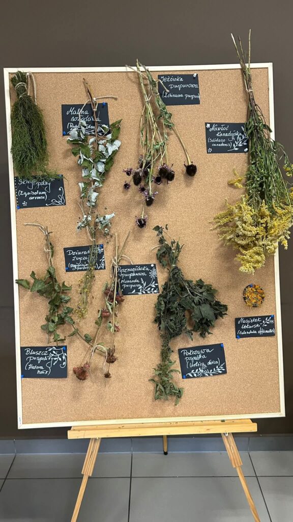 - – Warsztaty ziołolecznicze – podczas wspólnego tworzenia naparów ziołowych z przygotowanych mieszanek rozmawiano o właściwościach roślin leczniczych, ich zastosowaniu w profilaktyce oraz o tym, jak zioła mogą wspierać codzienne dbanie o zdrowie.